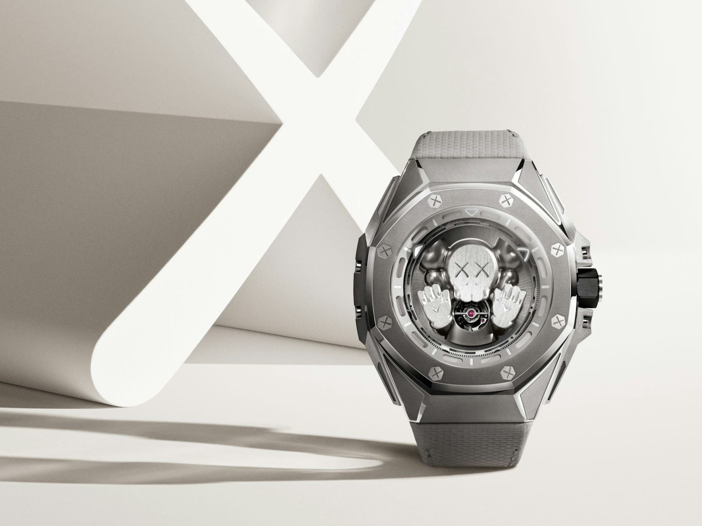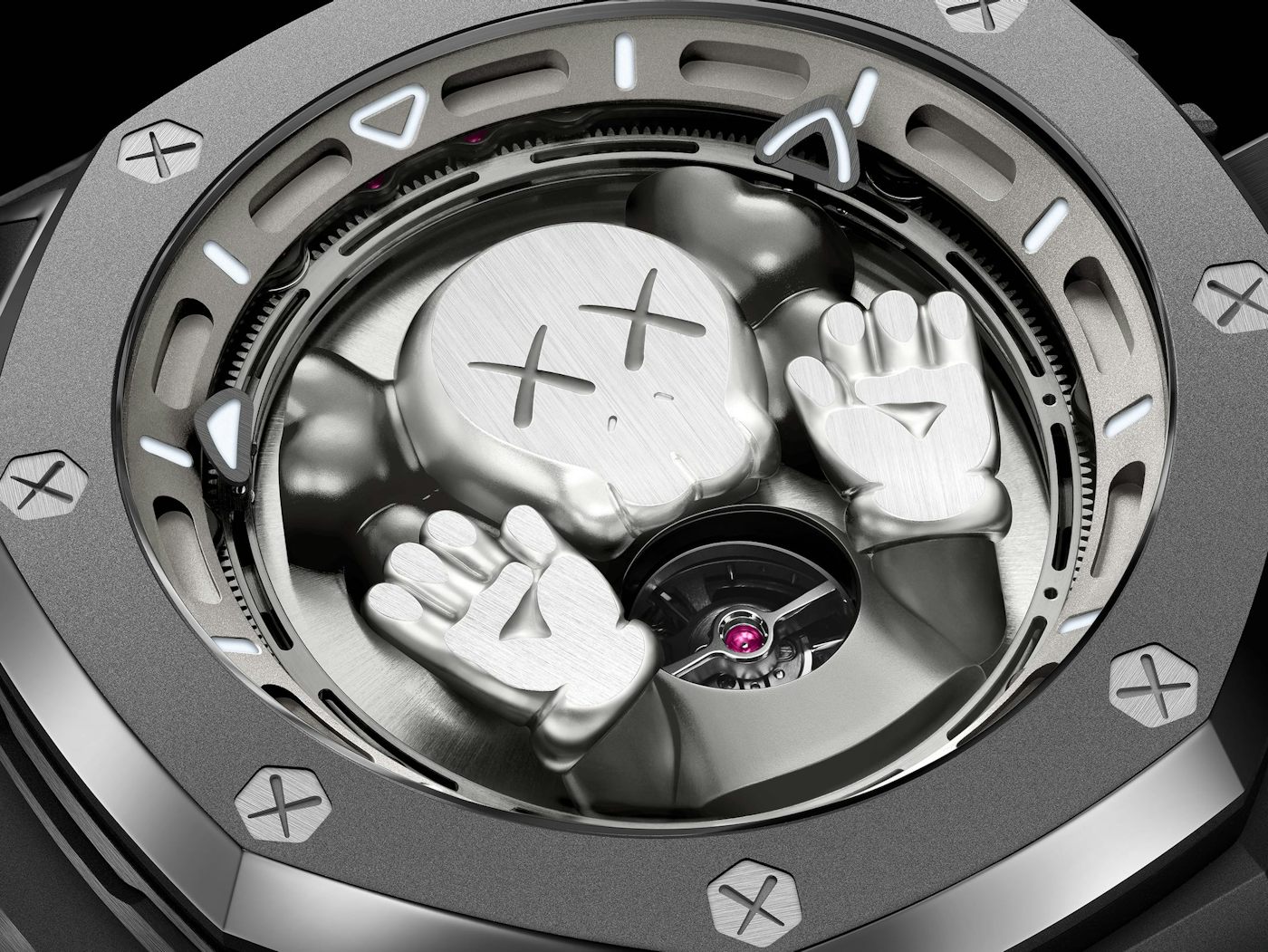 Kaws’ artistic influence extends to the movement, where the ratchet wheel incorporates the artist’s signature X motif.
